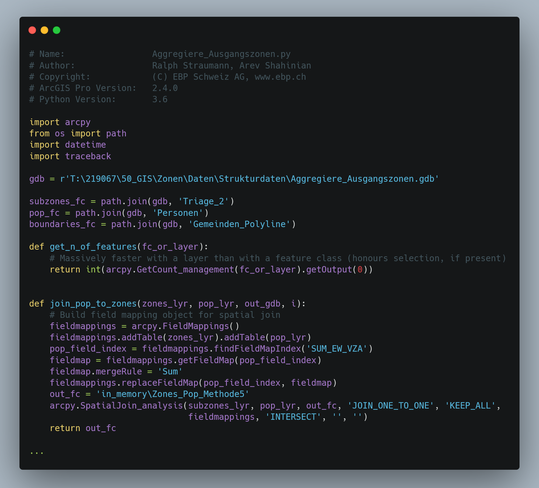 Meine GIS-Kenntnisse in einem solch praxisrelevanten Projekt einzusetzen hat mich enorm motiviert und schnell habe ich gemerkt, wie mächtig GIS-Tools für komplexe Fragestellungen sein können, wenn man sich über den Tellerrand hinaus beispielsweise hin zu Python-Scripting lehnt. Bereits im Studium hatte ich erste Gehversuche in diesem Bereich unternommen, doch die Bandbreite der Möglichkeiten wurde mir erst bei der Zusammenarbeit mit meinen Kolleginnen und Kollegen bei EBP bewusst: es gibt fast nichts, was man mit Python nicht machen kann!